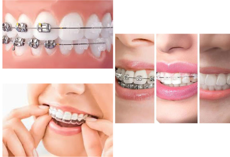 Braces and aligners are both orthodontic devices used to straighten teeth, correct bite issues, and improve overall dental health. Braces consists of traditional metal brackets / ceramic brackets / self ligating that are bonded to the teeth, connected by wires and rubber bands, which gradually move the teeth into better alignment over time. Traditionalbraces are very effective for correcting a variety of dental alignment problems, including overcrowding, crooked teeth, and bite issues. On the other hand, clear aligners, like Invisalign, are a more discreet alternative. These are removable, custom-made plastic trays that fit over the teeth and gradually shift them into place. Aligners are popular for adults and teens who prefer a more aesthetic option without the visibility of traditional braces. Both treatments typically require regular visits to the orthodontist for adjustments and monitoring.