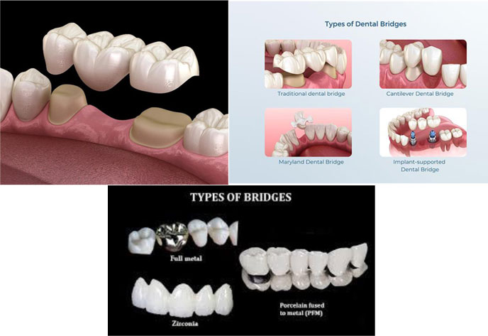 Crowns and bridges are restorative dental treatments used to repair and replace damaged or missing teeth. A crown is a cap placed over a damaged or weakened tooth to restore its shape, strength, and appearance. Crowns are often used for teeth that are severely decayed or have undergone root canal treatment.A bridge is used to replace one or more missing teeth by anchoring artificial teeth to the adjacent natural teeth or implants. This treatment is ideal for people who want to restore function and aesthetics, as bridges can help prevent shifting of teeth and restore a natural bite.